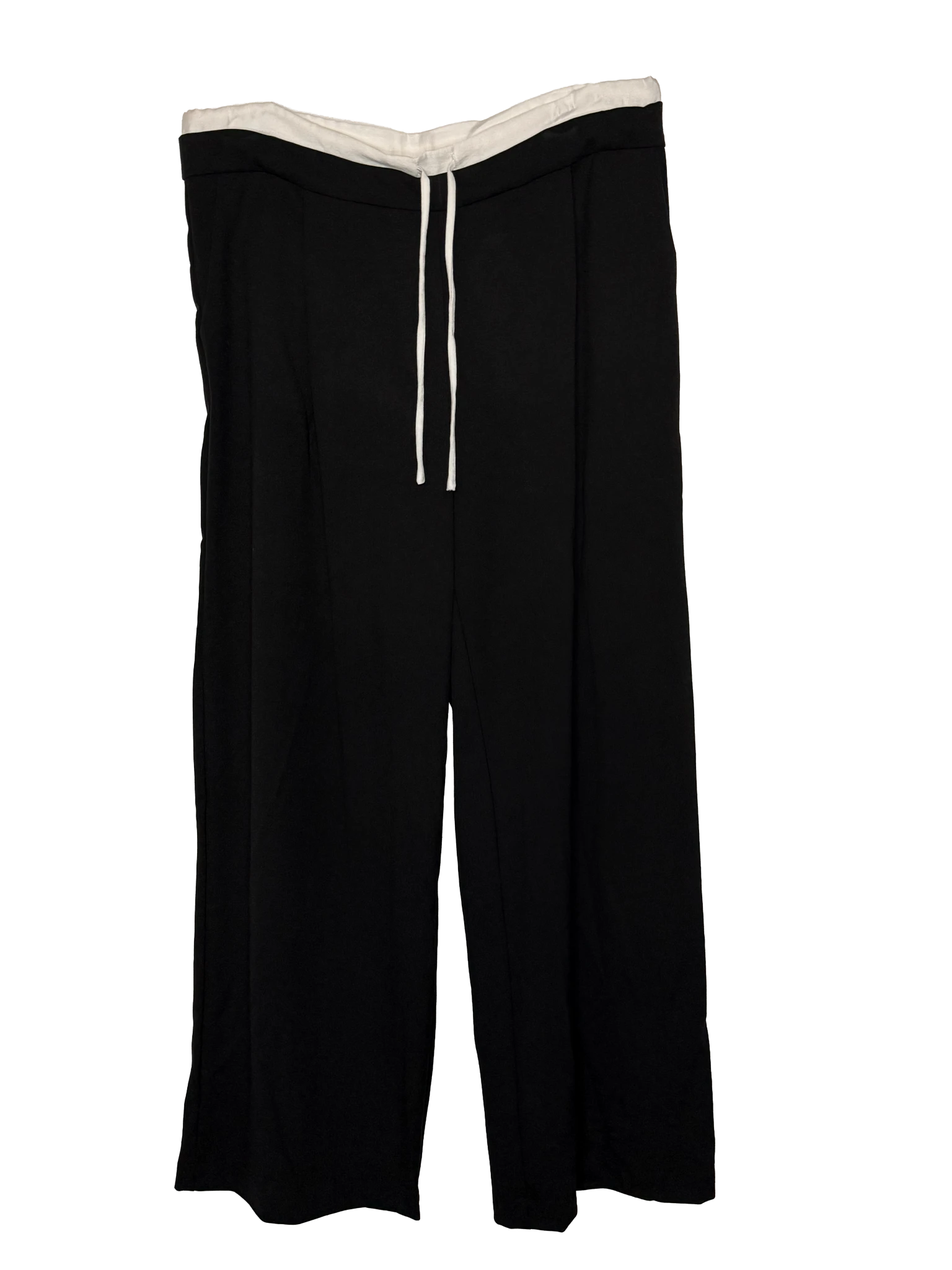 Confeccionado en tejido liviano tipo tencel, presenta un calce wide leg amplio, inspirado en el pantalón masculino. Su diseño incorpora una doble cintura en contraste que genera un efecto layering moderno y distintivo.
