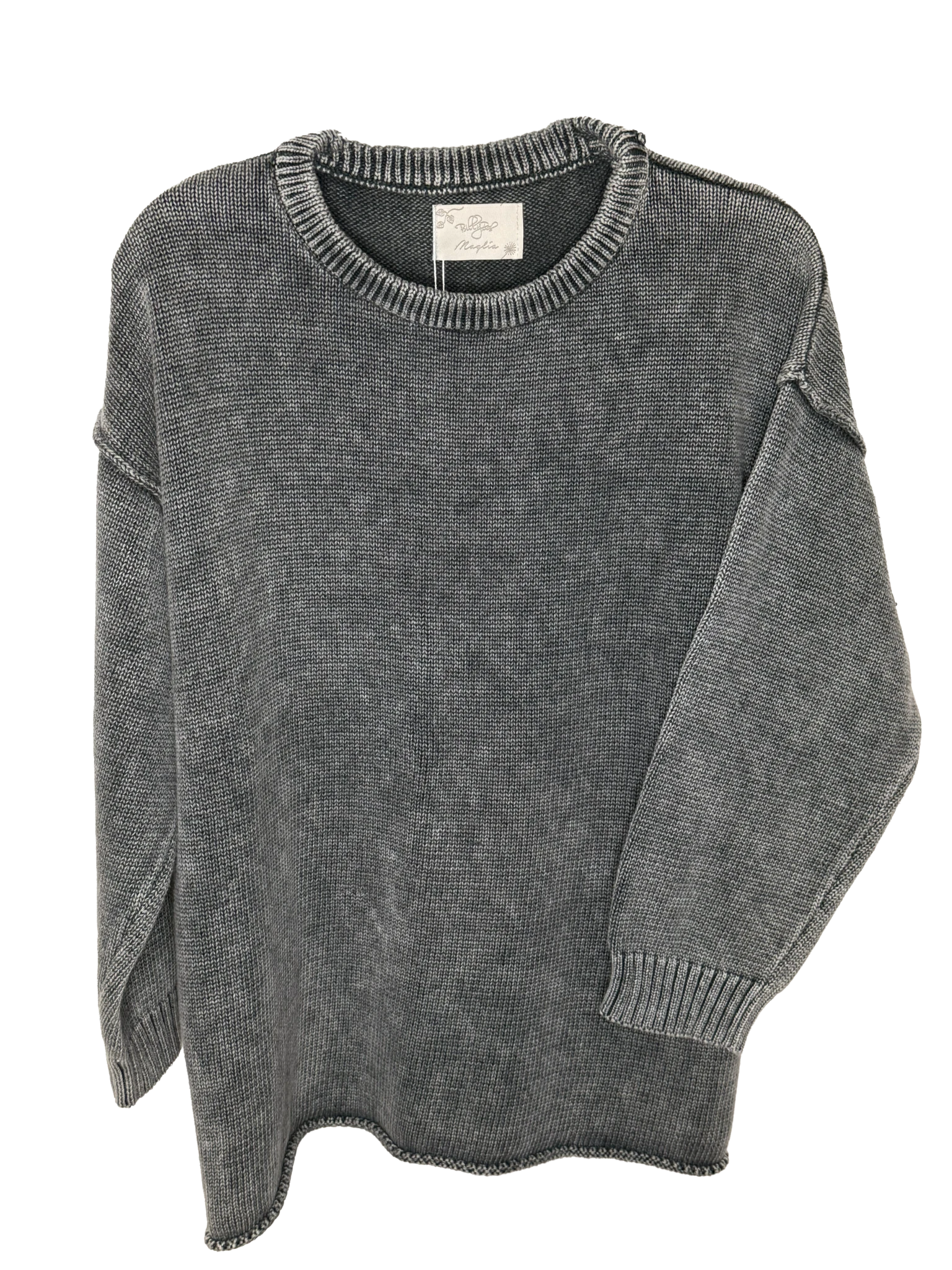 De calce oversize y cuello base, su tejido en algodón genera una sensación suave al tacto, sin picar, ideal para usar durante todo el año. Su efecto levemente desgastado le aporta una estética relajada y actual, alineada con la identidad de María Begué.